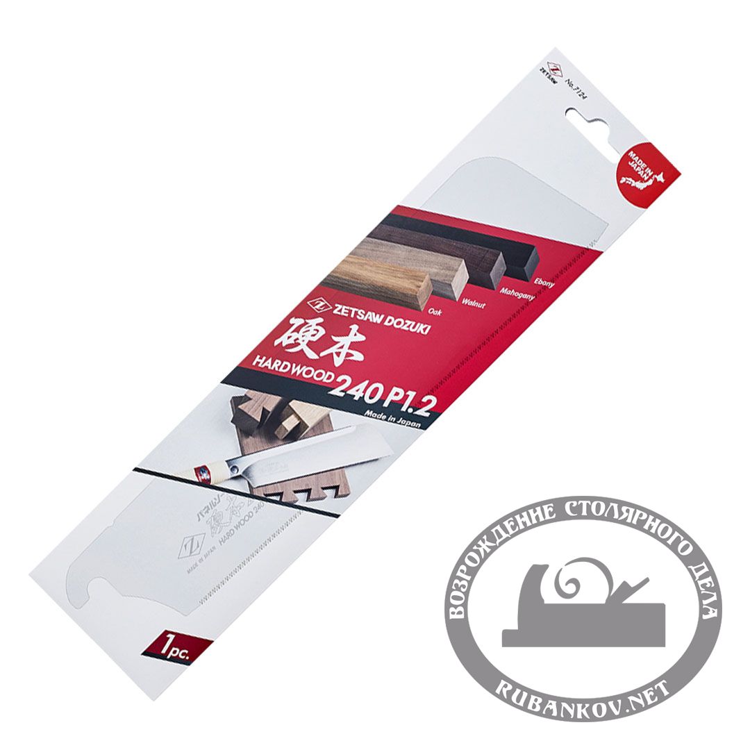 Полотно для пилы обушковой Z-Saw Dozuki Hardwood, 240мм, 21tpi, 0.3мм. Полотно для бушковой пилы предназначена для точных ювелирных столярных и реставрационных работ по твердым породам древесины. Для запиливания "ласточкиных хвостов" и других шиповых соединений. Делает практически зеркальный рез. Максимальная глубина пропила 38мм. Длина полотна - 150мм, толщина полотна 0,3мм. Шаг зубьев - 21 на дюйм. Трапециевидный японский зуб с импульсной закалкой позволяет работать по твердым породам древесины. Зубья японской пилы направлены к рукояти, что позволяет легко запиливаться и получать ровный рез и чистый рез. Используется для поперечного, продольного и комбинированного реза. Эта пила не требует заточки и готова к работе.