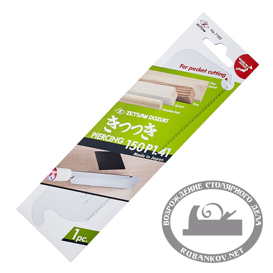 Полотно для пилы обушковой Z-Saw Dozuki Piercing, 150мм, 18tpi, 0.3мм. Полотно для обушковой пилы предназначено для точных чистовых работ по твердым породам древесины. Для идеального запиливания поперек волокна древесины. Первый зуб дает возможность запиливаться в середине материала. Максимальная глубина пропила 38мм. Длина полотна - 150мм, толщина полотна 0,3мм. Шаг зубьев - 18 на дюйм. Трапециевидный японский зуб с импульсной закалкой позволяет работать по твердым породам древесины. Зубья японской пилы направлены к рукояти, что позволяет легко запиливаться и получать ровный рез и чистый рез. Используется для поперечного и комбинированного реза. Эта пила не требует заточки и готова к работе.
