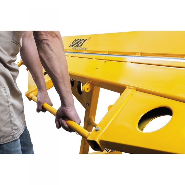 Укреплённая конструкция и использование материалов самого высокого качества при изготовлении этой модели делают работу на станке простой и удобной. Несмотря на большие размеры, он мобилен и прост в транспортировке. Станок перемещается на колёсах с блокировкой. Использование платформы увеличивает стабильность во время работы.
