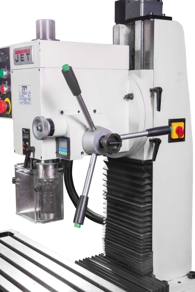 Станок универсальный сверлильно-фрезерный по металлу JET JMD-X4L. Устанавливается на верстак или на тумбу для удобной эргономики при эксплуатации. Станок имеет внушительный рабочий стол для своего класса станков 820х240 мм. Мощный двигатель 1,5 кВт позволяет обрабатывать огромную гамму заготовок. Главной особенностью станка JMD-X4L является наличие отдельного двигателя по оси Z ЂЂЂ это позволяет легко и быстро перемещать шпиндельную голову по оси Z. Шпиндельная голова имеет возможность поворота в обе стороны на 50` и 45` соответственно. Для точного выставления угла наклона головы предусмотрен цифровой угломер. А для точного контроля выхода пиноли на станке установлен дисплей с цифровым выводом значения величины вылета пиноли шпинделя.