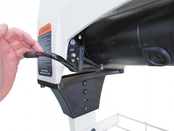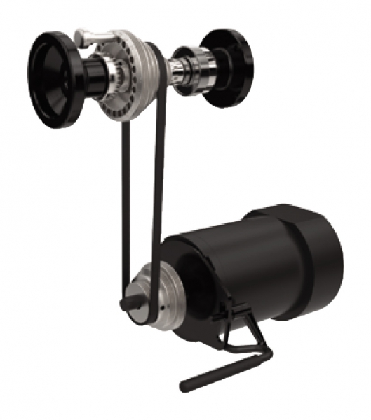 Станок оборудован асинхронным мотором, который работает с постоянной частотой вращения (1400 об/мин). Для выбора скорости шпинделя меняют положение поликлинового ремня (предусмотрено шесть пар шкивов). Эта операция занимает минимум времени и производится без использования вспомогательных инструментов.