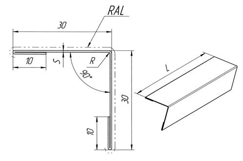 Конек простой оцинкованный 200х200 мм (цена за м.п.)