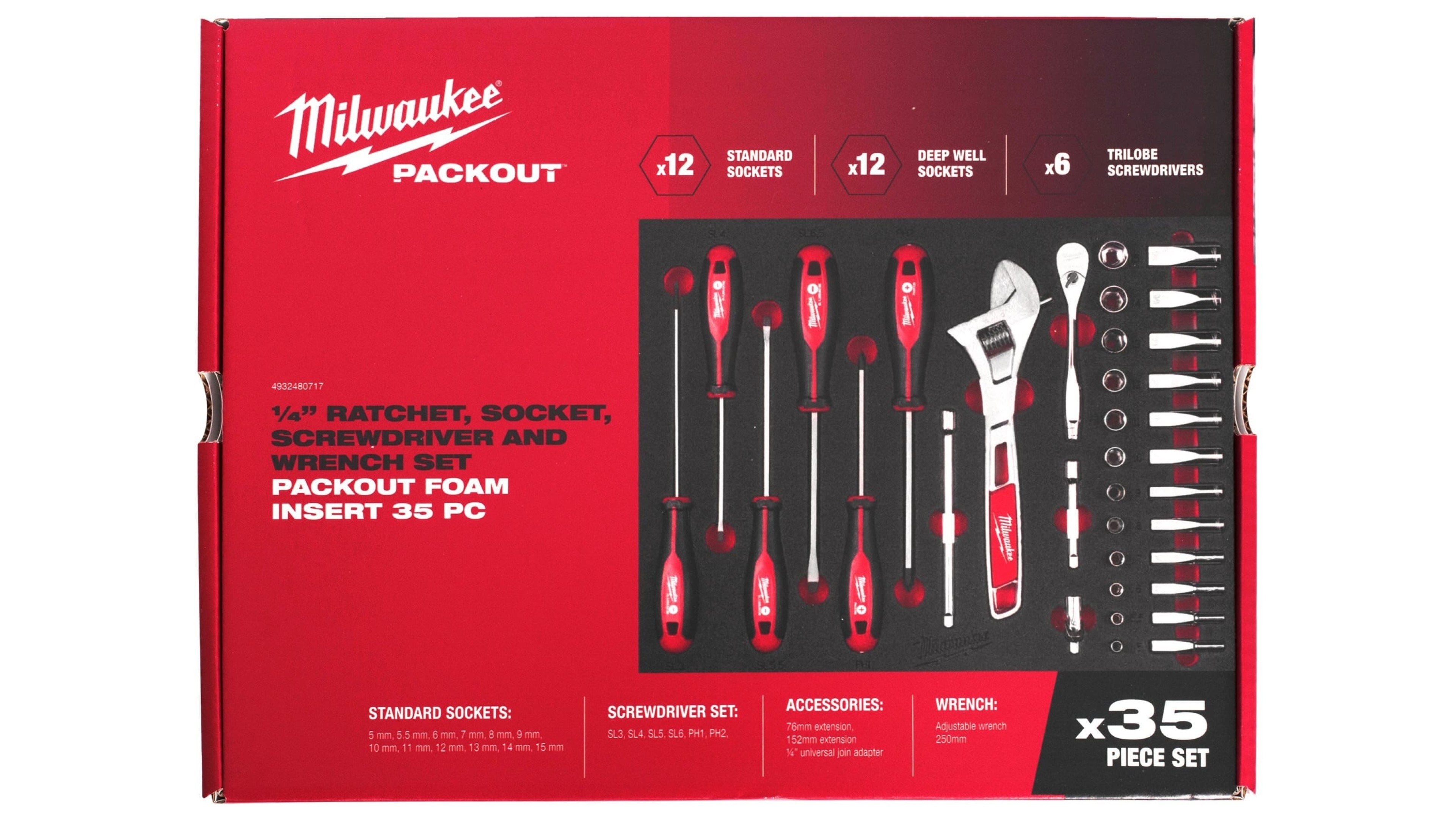 Набор торцевых головок 1/4 с трещоткой и шестигранных ключей Milwaukee для PACKOUT (35 шт)