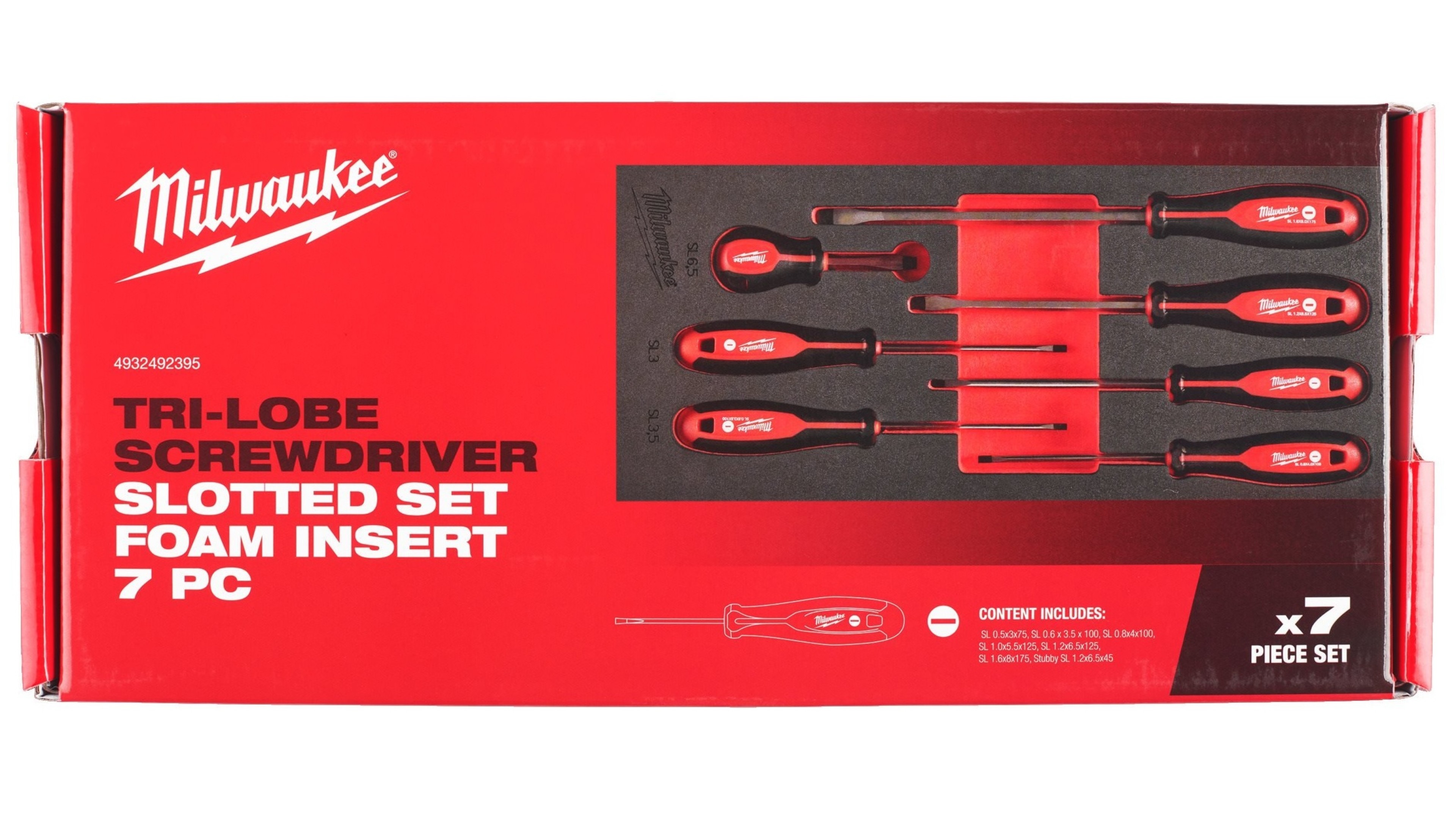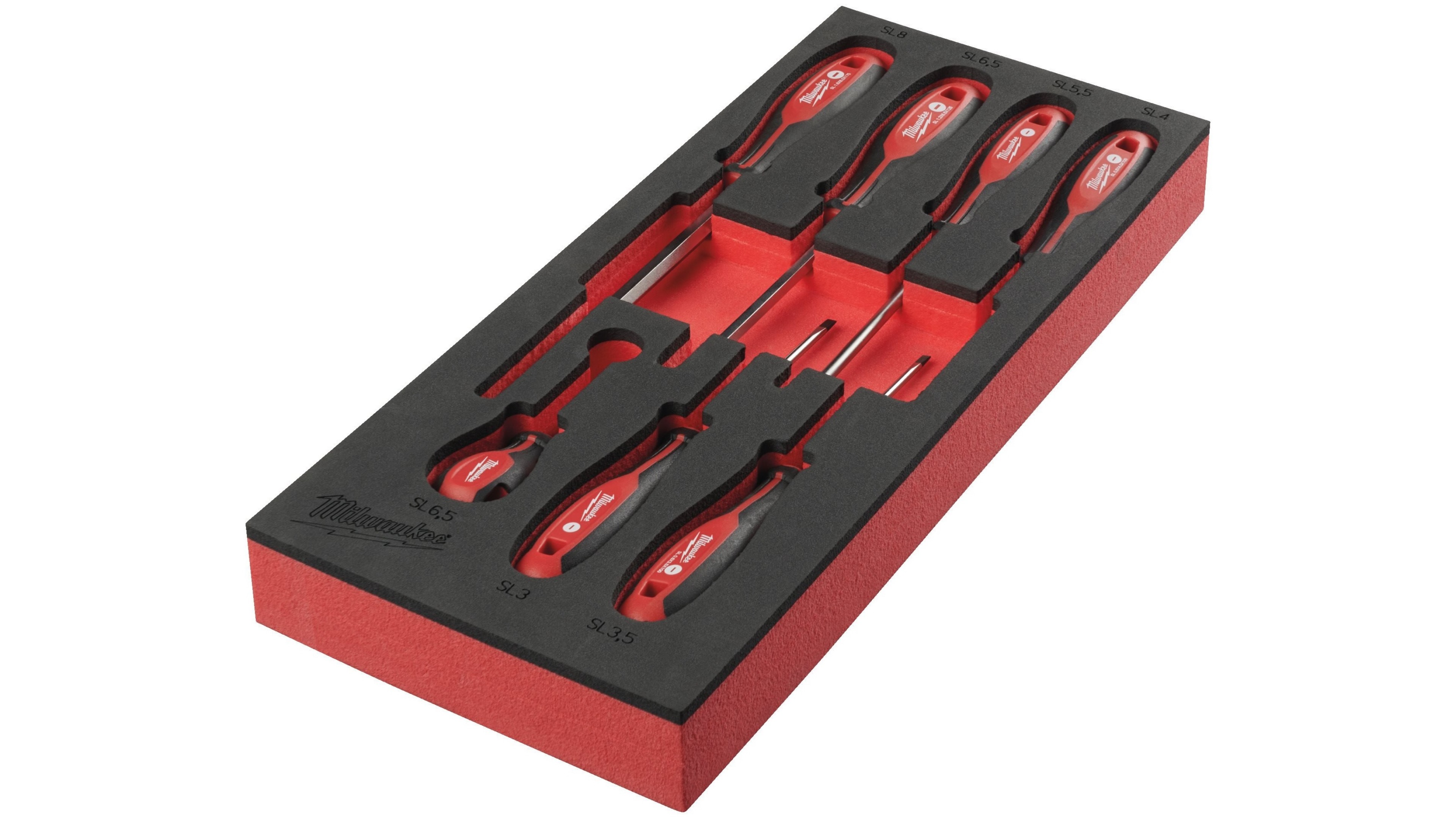 Ложемент Milwaukee с отвертками SL набор 7ед. (SL 0.5x3 x75, SL 0.6x3.5/SL 0.8x4 x100, SL 1.0x5.5/SL 1.2x6.5 x125, SL 1.6x8 x175, SL 1.2x6.5 x45)