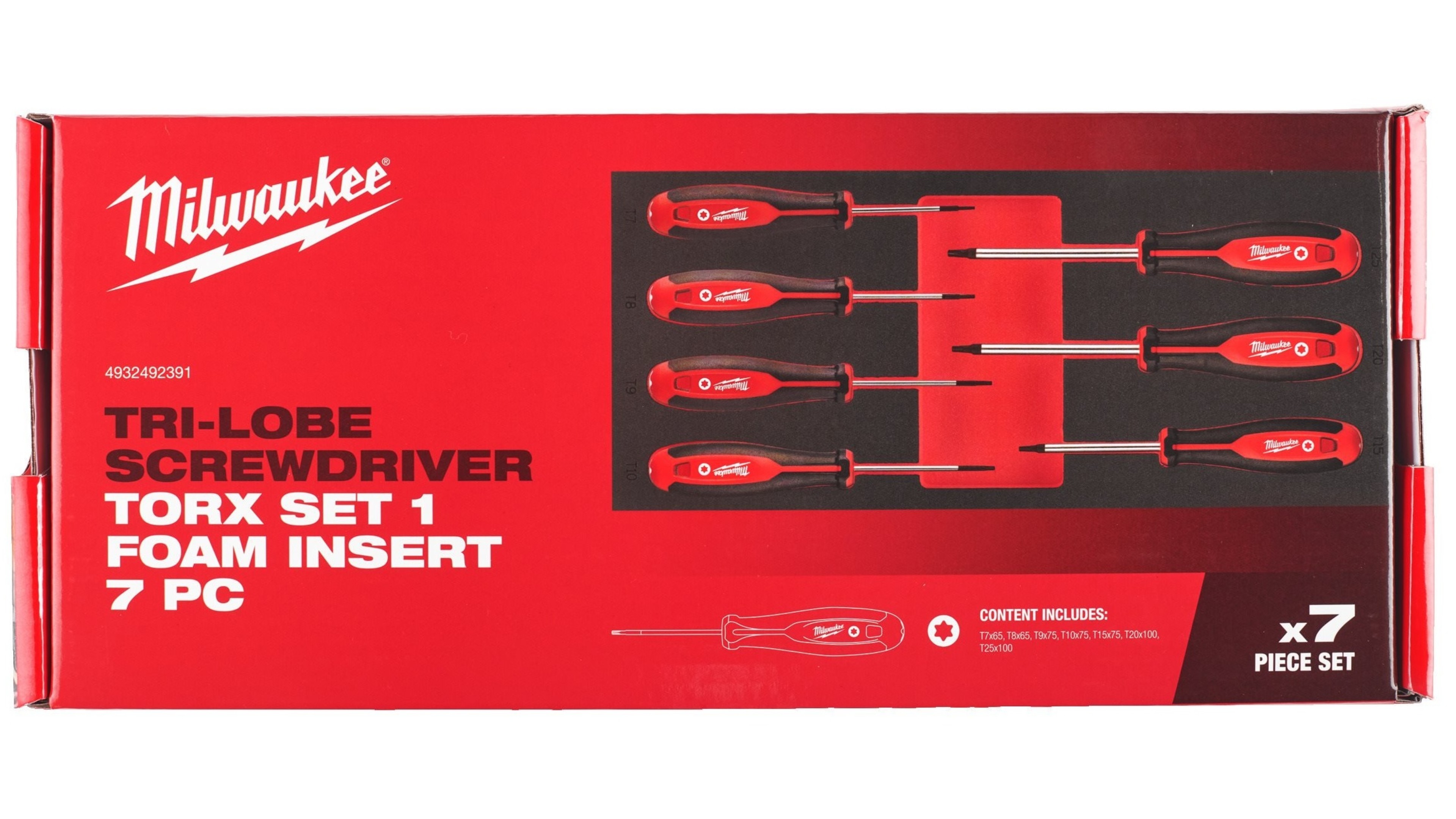 Ложемент Milwaukee с отвертками TORX набор 7ед. (T7/T8 x65, T9/T10/T15x75, T20/T25x100)