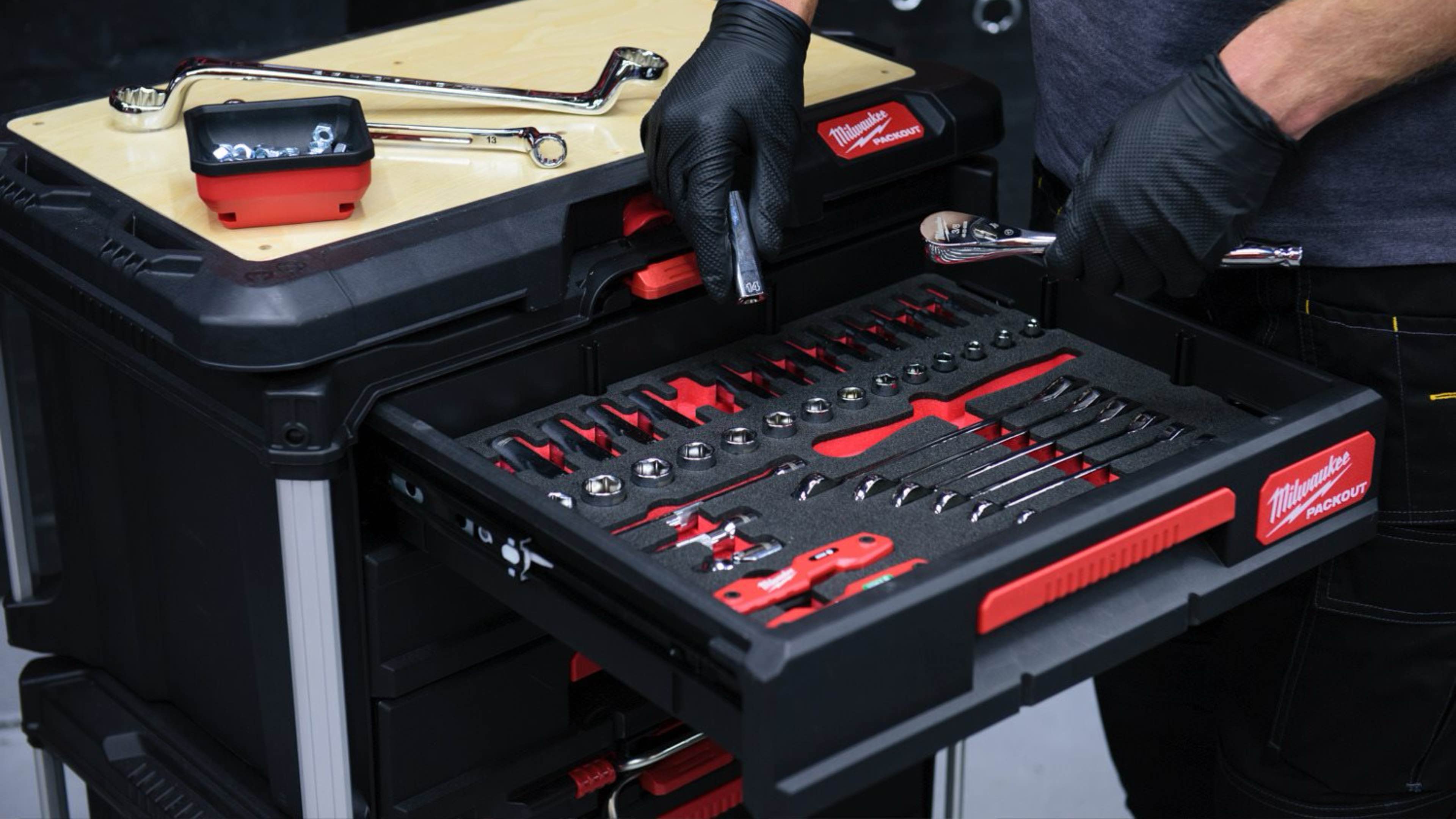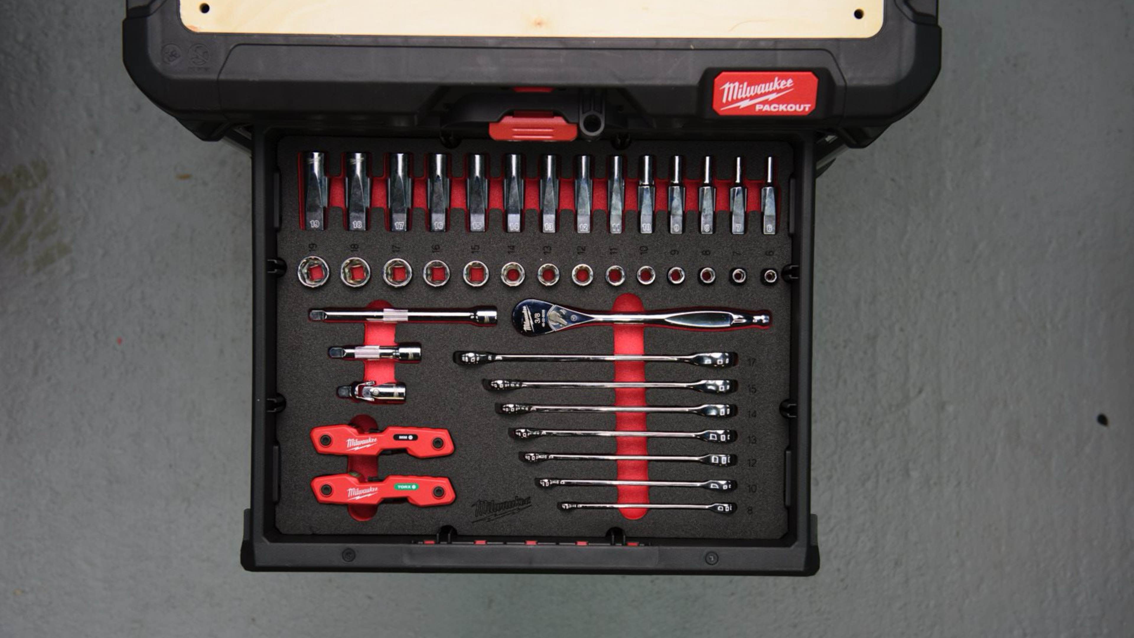 Головки 3/8'' с воротком с трещоткой с инструментом набор 55ед. в ложементе для PACKOUT Milwaukee