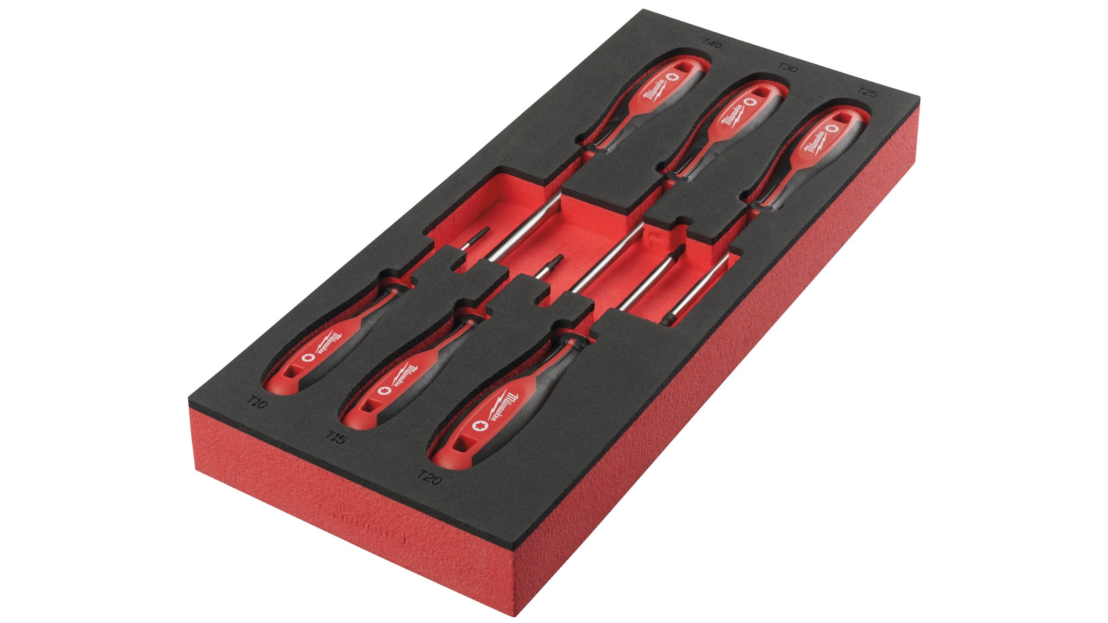 Ложемент Milwaukee с отвертками TORX набор 6ед. (T10/T15x75, T20/T25x100, T30/T40x125)