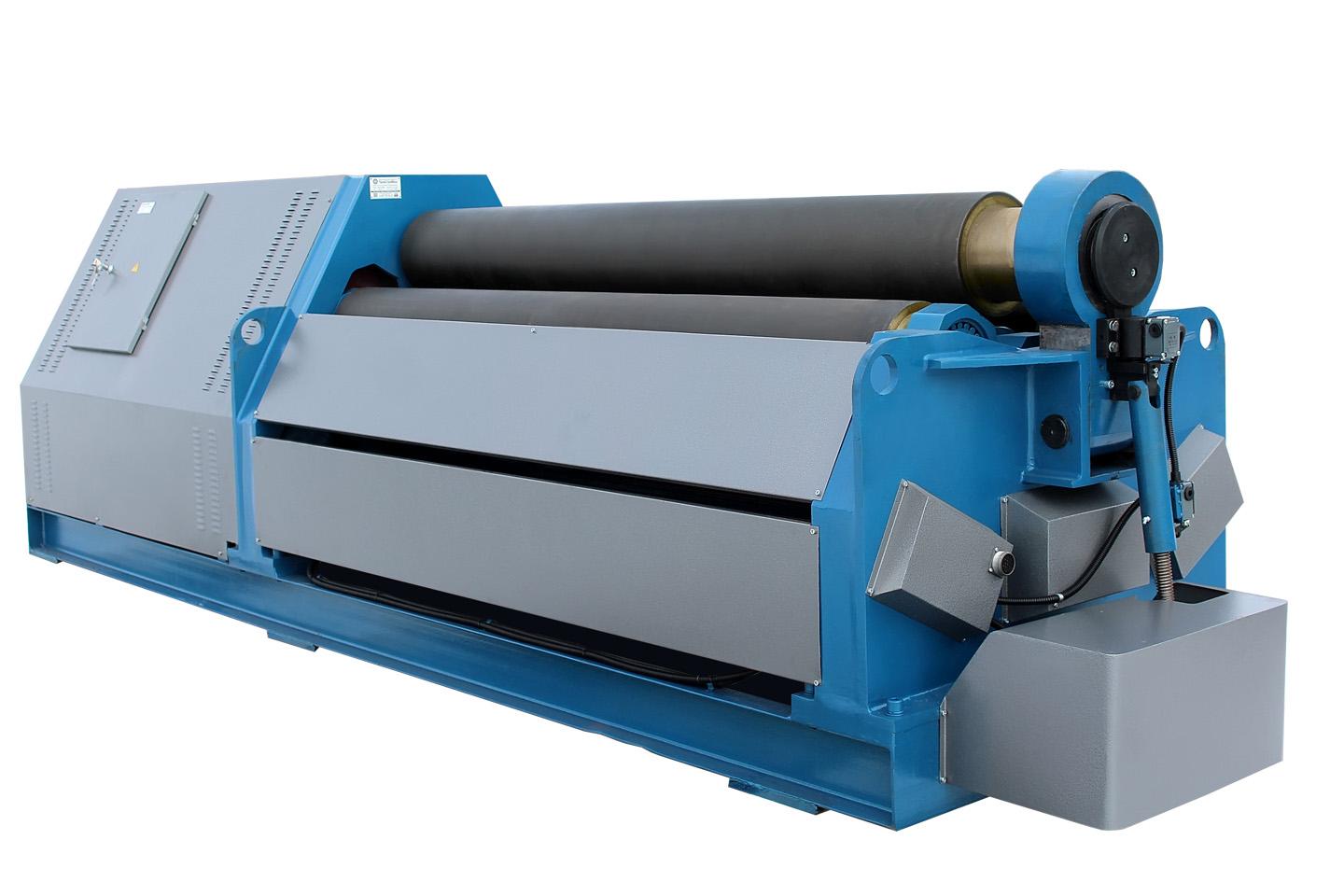 Правая опора верхнего валка размещена на правой стойке, а левая поддерживается откидной опорой, при откидывании которой можно снять готовое изделие с верхнего валка. Механизм регулировки боковых валков и механизм наклона откидной опоры имеют индивидуальные приводы. Управление машиной кнопочное, осуществляется с общего пульта управления.