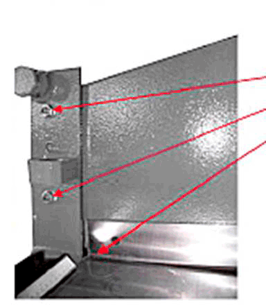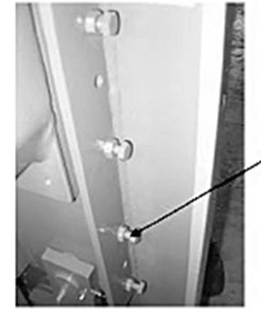 Регулировка заднего упора ножниц гильотинныx электромеханическиx МНГ 2,5х2500 выполняется на опорных осевых гайках М24. Валы заднего упора двигаются вперед пока не коснутся нижней поверхности ножа. Оба боковых вала должны касаться поверхности ножа. Если один из них остался спереди или сзади они должны быть выведены на один уровень.