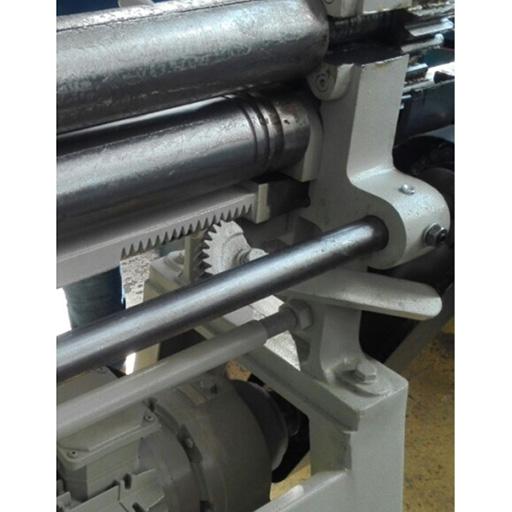 - производится гибка листа в цилиндр (радиус гибки зависит от положения боковых валков относительно верхнего, контроль которых осуществляется с помощью линеек расположенных на правой стойке машины);