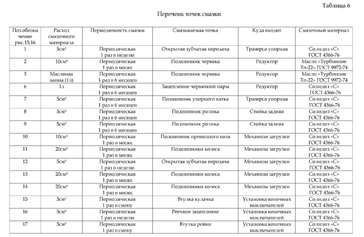 в) открытая зубчатая передача привода механизма загрузки, привода упорной траверсы, рейка установки конечных выключателей смазываются ручной обмазкой солидолом марки «С» ГОСТ 4366-76.