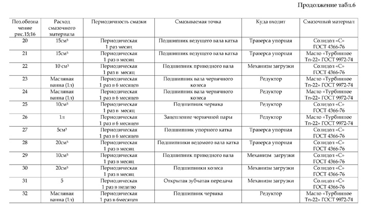 а) подшипники качения механизма загрузки упорной траверсы, редуктора, системы блоков натяжения кабеля смазываются набивкой солидола марки «С» ГОСТ 4366-76;