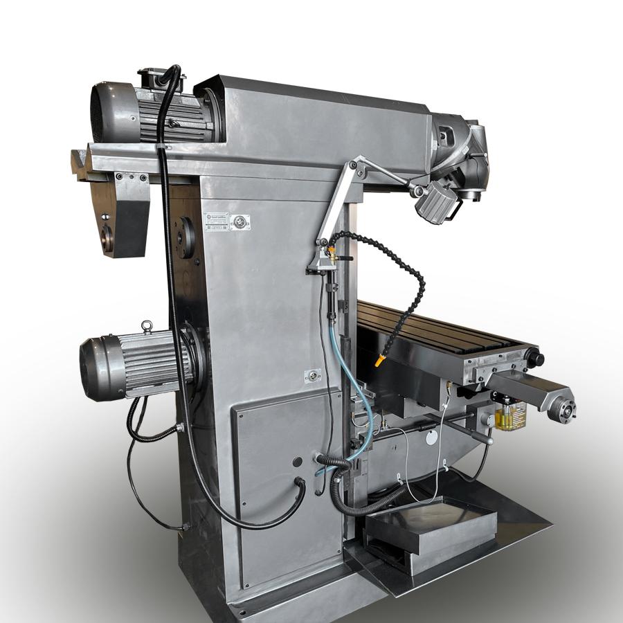 - Поворотная станина соединяется с консолью через прямоугольные направляющие. Стол соединяется с салазками через направляющие типа "ласточкин хвост". Рабочий стол и салазки перемещаются посредством ходового винта и гайки.